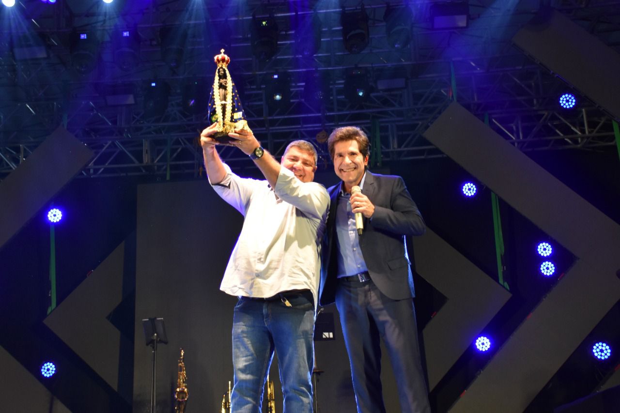 A apresentação foi cheia de momentos marcantes, como o berrante, a entrega de uma imagem de Nossa Senhora ao prefeito Josmail Rodrigues, além de presentes ao público, como flores e bonés.