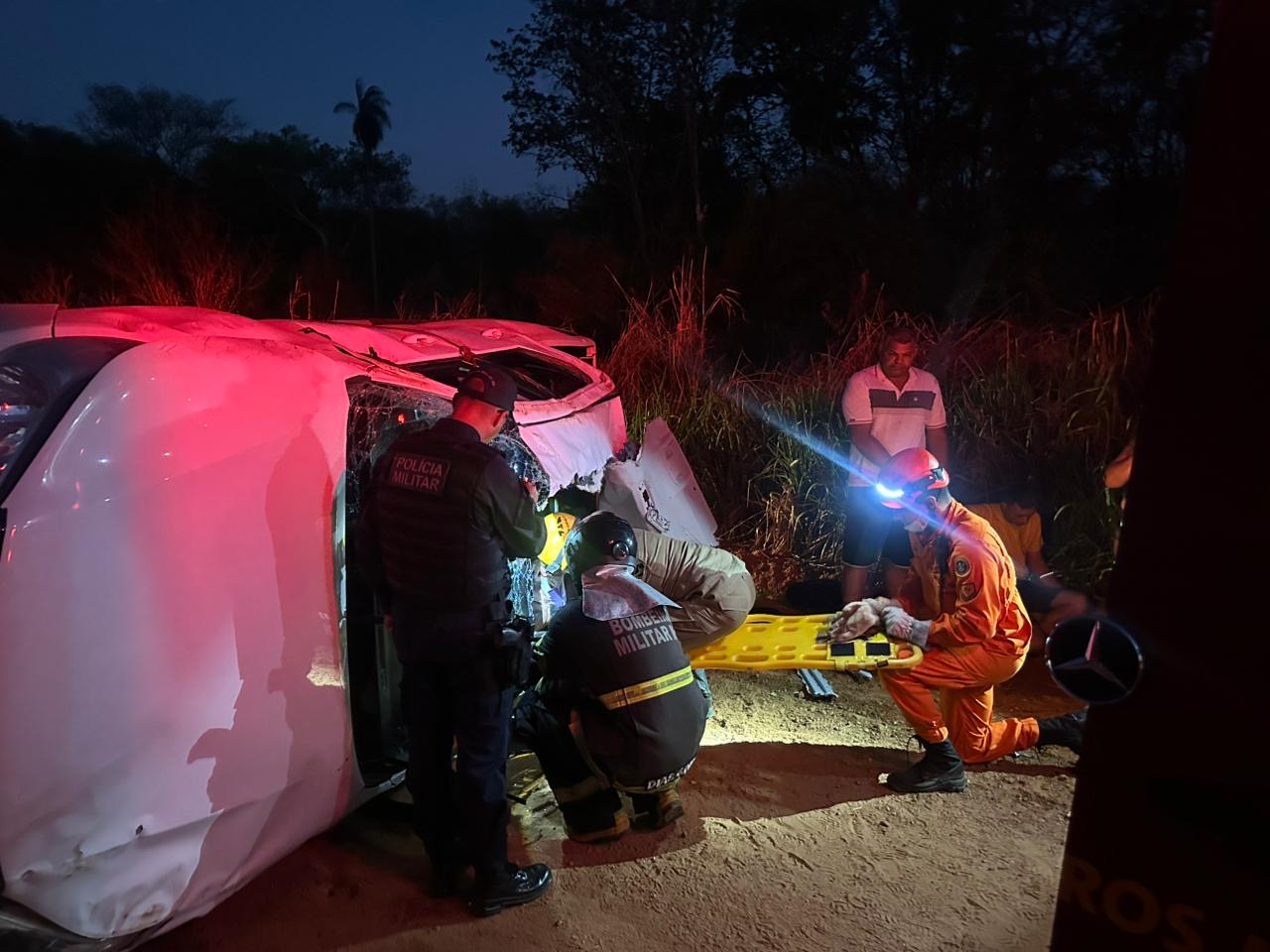 Veículo capota em estrada de acesso a atrativos de Bonito e quatro pessoas ficam feridas