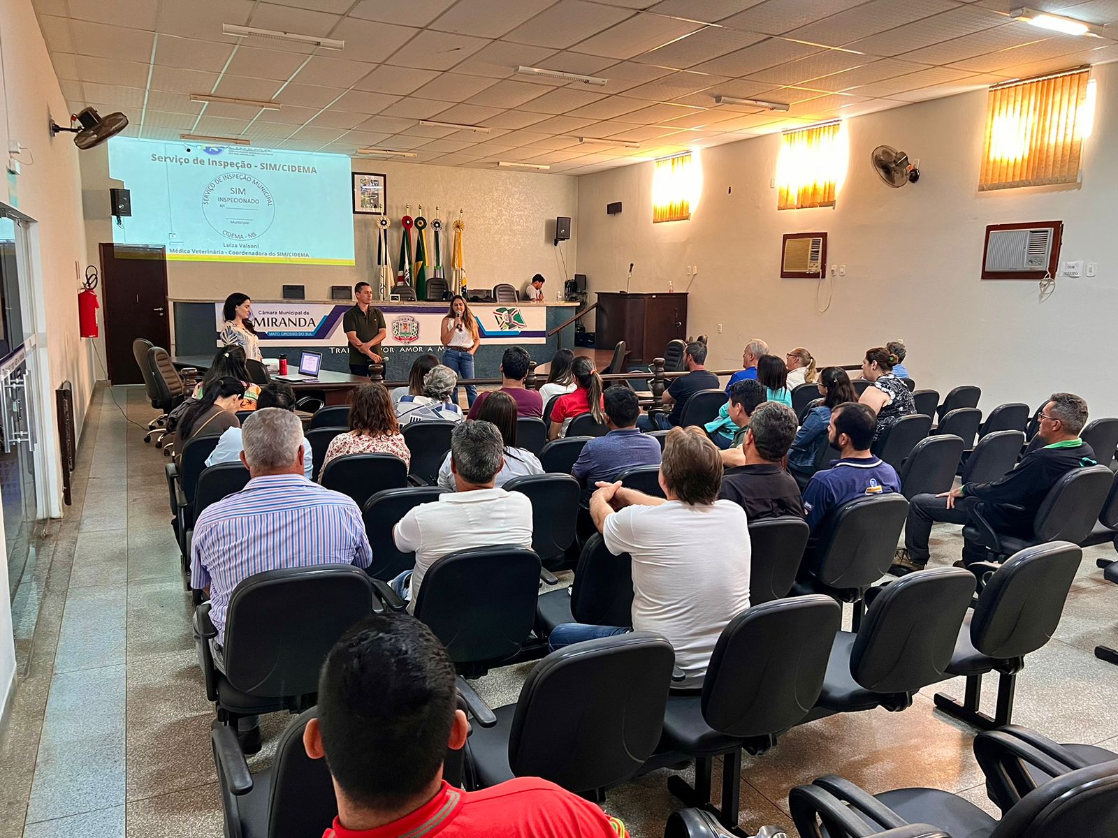 Na terça-feira, 20, no plenário da Câmara Municipal, a Prefeitura realizou a reunião que marcou o início das atividades do Cidema que, na prática, substituirá o Serviço de Inspeção Municipal (SIM). O SIM a partir de agora, passará a acompanhar os trabalhos da equipe do Cidema na fiscalização dos produtos de origem animal, como linguiça, mel, entre outros, que são produzidos em Miranda e comercializados no mercado local.
